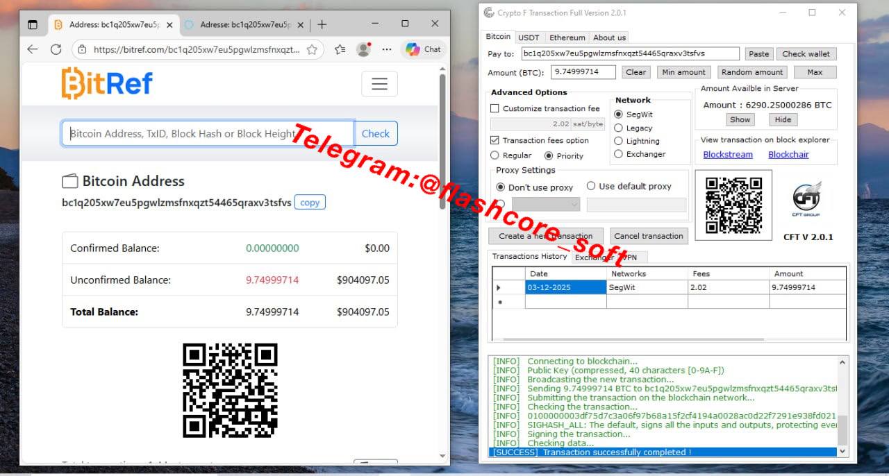 Crypto F Transaction Version 2.0.1 allows you to send flash transactions in BTC, USDT, and ETH, directly from a smart server where amounts are integrated, automated, and secure.